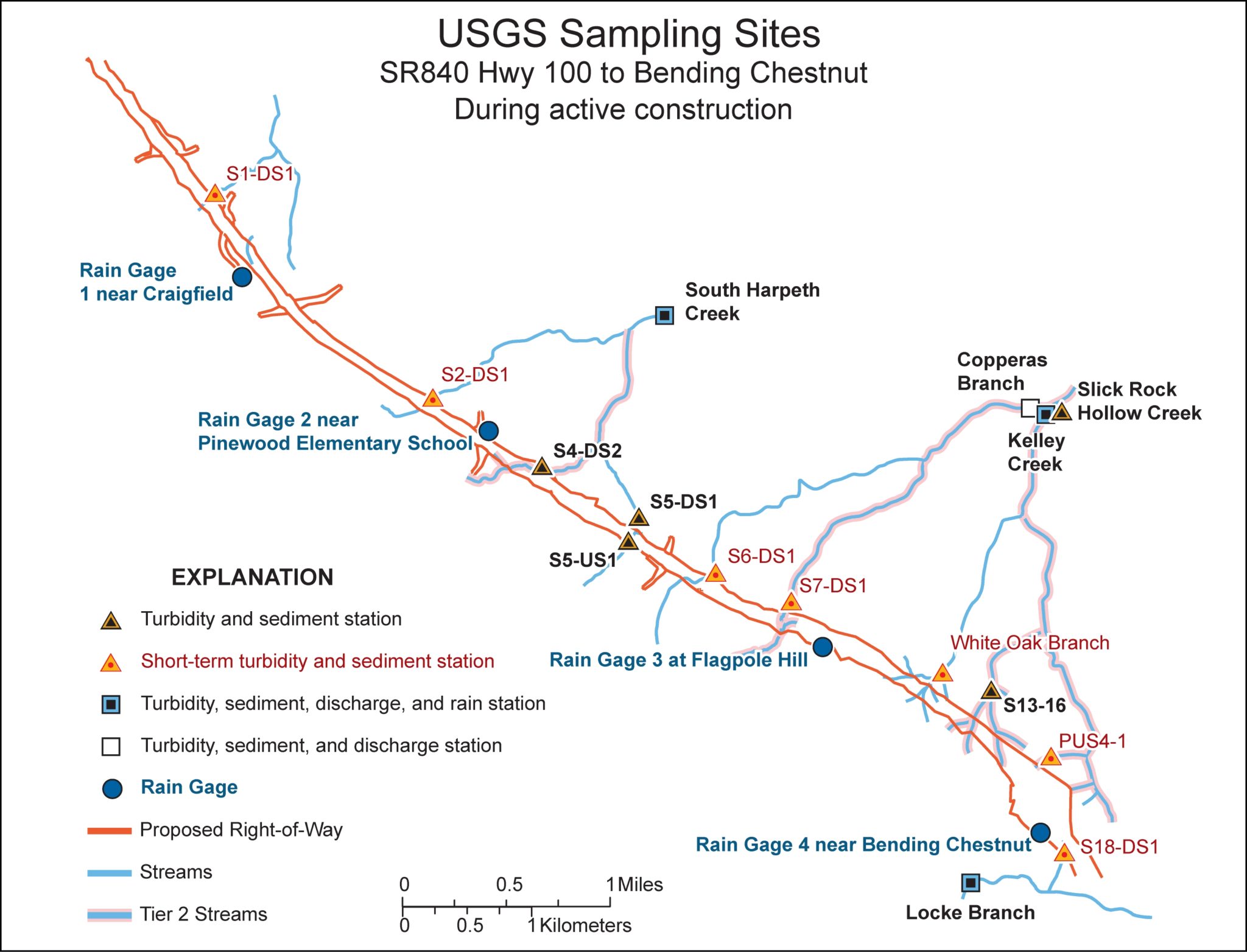 In June 2002, the Tennessee Department of Transportation (TDOT) let to contract the 6.5-mile section of SR-840 from SR-100 to SR-46. Later that year, site inspections by the Tennessee Dept. of Environment and Conservation (TDEC), some of which were due to citizens’ complaints, found large areas of disturbed ground, major sediment releases into streams and tributaries, and either improperly installed EPSC measures or a lack of EPSC measures. The department received a Notice of Violations on the project, which halted the construction project. TDOT was ultimately fined $800,000. Against this background, TDOT made numerous design changes to the 840 segment between SR-100 and Pinewood Road to minimize environmental impacts. The section was re-let to contract in July 2007.